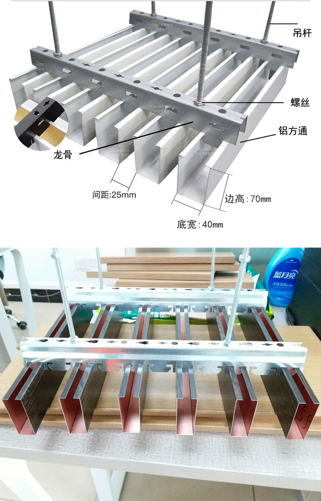 木紋鋁方(fang)通(tong)吊頂造(zao)型多(duo)樣式,通(tong)風、美(mei)觀大(da)方(fang),裝(zhuang)飾后使空間具(ju)有和諧美(mei)感,它結構簡單(dan),拼裝(zhuang)自(zi)由、能組合各種造(zao)型各種樣式。