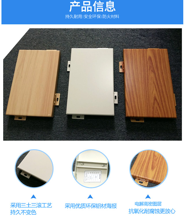 木紋(wen)(wen)鋁單板(ban)(ban)是(shi)(shi)以(yi)高(gao)(gao)等(deng)級鋁合金(jin)為主要材料(liao)(liao),按(an)工程現場設(she)計(ji)的(de)尺寸、形(xing)狀和構造形(xing)式經(jing)過(guo)數(shu)控(kong)折彎等(deng)技術成型,并在其表面氟碳(tan)噴涂的(de)基礎上采(cai)用(yong)意大(da)利木紋(wen)(wen)膜(mo),經(jing)抽(chou)真(zhen)空處(chu)理(li)(li),將木紋(wen)(wen)膜(mo)移印到(dao)鋁單板(ban)(ban)的(de)氟碳(tan)涂層上的(de)一種高(gao)(gao)檔(dang)金(jin)屬裝飾(shi)材料(liao)(liao)。我(wo)公司生產的(de)木紋(wen)(wen)鋁單板(ban)(ban)采(cai)用(yong)國際先進新型圖紋(wen)(wen)裝飾(shi)材料(liao)(liao),圖案高(gao)(gao)檔(dang)華麗、色澤紋(wen)(wen)理(li)(li)逼真(zhen)、圖紋(wen)(wen)牢固耐磨,不含甲醛、無(wu)毒、無(wu)有害氣體(ti)釋放,使您(nin)不必再為裝飾(shi)后(hou)油(you)漆和膠類物質帶來(lai)的(de)異味(wei)及身體(ti)傷害而擔憂,品質卓(zhuo)越,是(shi)(shi)高(gao)(gao)檔(dang)建筑裝飾(shi)的(de)首(shou)選材料(liao)(liao)。