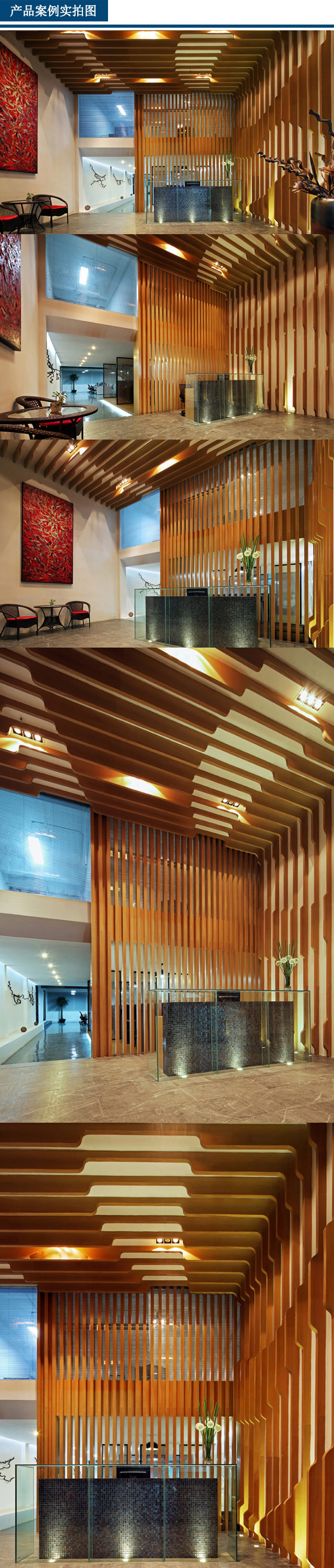 造型鋁方通線(xian)條飄逸(yi),通透(tou),層次感(gan)好(hao)(hao),視覺效(xiao)果能產生夢幻(huan)的(de)城(cheng)堡(bao),開闊的(de)視野;在材(cai)(cai)質上有(you)(you)可選之(zhi)處,有(you)(you)簡約的(de)板材(cai)(cai),更有(you)(you)牢(lao)固的(de)型材(cai)(cai);設計師(shi)在設計裝飾效(xiao)果時更加(jia)具(ju)有(you)(you)選擇性(xing),想象空間更大,設計效(xiao)果好(hao)(hao),可以多種規格和顏色板材(cai)(cai)混合使用,打破了以往單調的(de)裝飾風(feng)格。