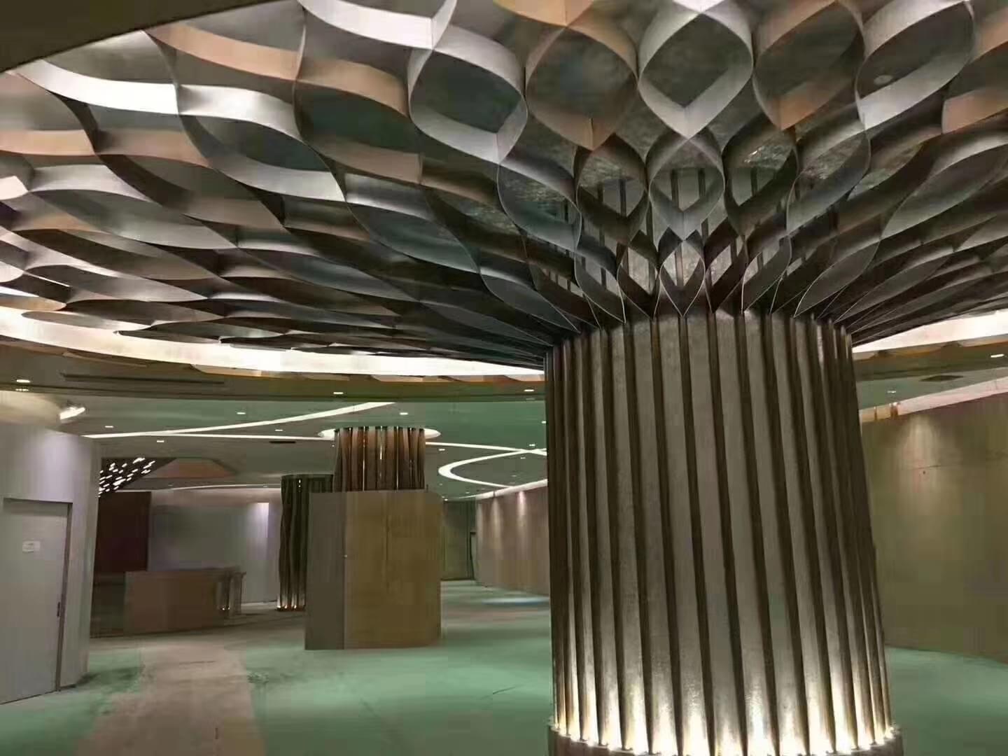 弧形(xing)鋁方(fang)通(tong) 鋁樹(shu)天(tian)花由鋁板按要求開(kai)料再燒焊成(cheng)弧形(xing)。美觀(guan)的外(wai)形(xing),配予(yu)不(bu)(bu)同的顏色,能組合出不(bu)(bu)同裝飾風格,塑造出不(bu)(bu)同的視(shi)覺效果。