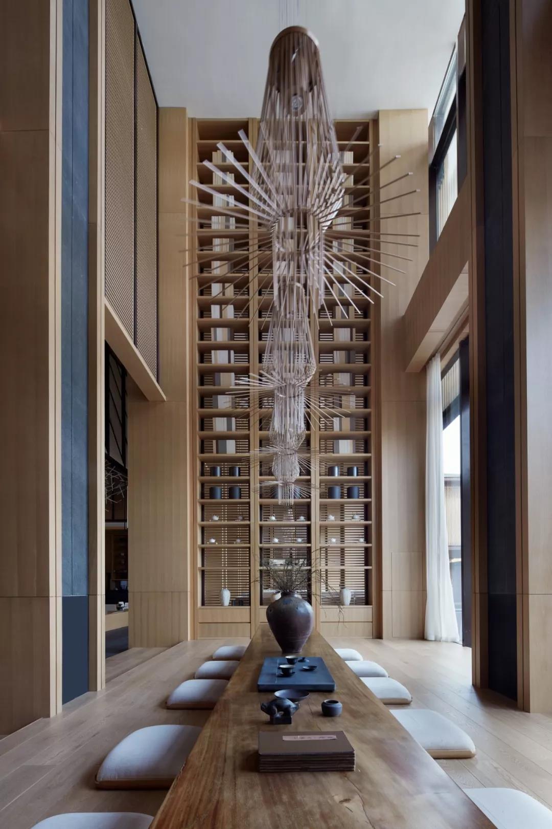 通過各功能區域之間的互動、光影之間的糅合、材質之間的交錯、表現手法的繁簡交融,讓有限的空間獲得無限回味與深遠意境。追尋身心的自由自在、高逸放達;書香水韻,品茗之樂,成雅集之趣。打破時間與空間的邊界,讓時間在此放緩腳步,使現代社會人們焦躁不安的心靈得以徹底的休息及療愈。讓人們對自身的傳統東方文化以一種謙卑的全新的角度進行重新的審視和品味。